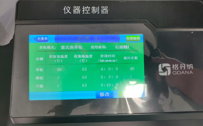 參數(shù)設(shè)置:通過外接控制器的大屏幕界面,演示如何根據(jù)檢測(cè)需求選擇萃取方法(如經(jīng)典索氏萃取法、熱萃取法),并設(shè)置加熱溫度、萃取時(shí)長等參數(shù),同時(shí)講解參數(shù)保存與調(diào)用功能,方便后續(xù)同類樣品檢測(cè);